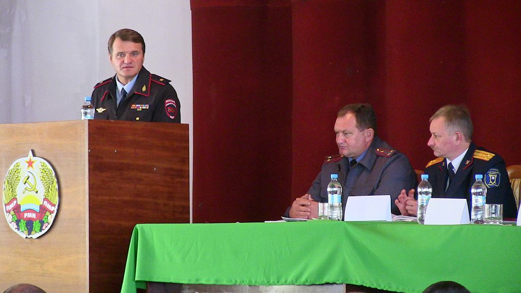 В минувшую среду рыбницкие милиционеры подвели итоги оперативно-служебной деятельности за 9 месяцев 2017 года. В совещании приняли участие министр внутренних дел ПМР генерал-майор милиции Руслан Мова, глава госадминистрации Рыбницкого района и г. Рыбницы Вячеслав Фролов, председатель Рыбницкого городского и районного Совета народных депутатов Вадим Лозовский, прокурор г. Рыбницы и Рыбницкого района Руслан Калуцкий, начальник УСК г. Рыбницы и Рыбницкого района Александр Иордатий, председатель суда г. Рыбницы и Рыбницкого района Анна Лужацкая, а также личный состав Рыбницкого ОВД.
