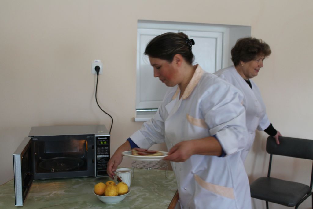 Как отметила главный бухгалтер учреждения Наталья Рожко, микроволновка – это большое подспорье на кухне, когда возникает необходимость разогреть небольшую порцию еды, например для болеющих подопечных.