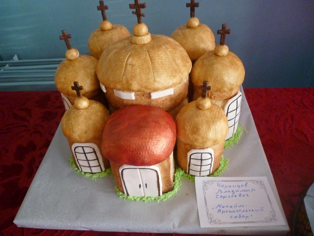 Михаило-Архангельский собор из теста, большая ватрушка, черепашка-вкусняшка – экспозиции – одна лучше другой. А запах… Каждое изделие так и просилось в рот.