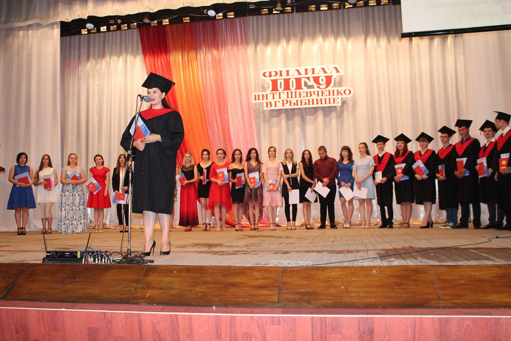 Из 84 выпускников 2018 года филиала ПГУ им. Т.Г. Шевченко в г. Рыбнице дипломы с отличием заслужили 26 молодых специалистов, что составляет более трети от общего количества, и этим можно гордиться. В зале городского Дворца культуры состоялась торжественная церемония вручения дипломов выпускникам нынешнего года. В мероприятии приняли участие почетные гости – заместитель главы государственной администрации Рыбницкого района и города Рыбницы по социальным вопросам Юрий Молдовский, первый проректор ПГУ им. Т.Г. Шевченко, кандидат экономических наук доцент Николай Смоленский, депутат ВС ПМР Андрей Сафонов, руководитель Рыбницкого отделения партии «Обновление» Наталья Мамалыга, многочисленные родственники и друзья выпускников.