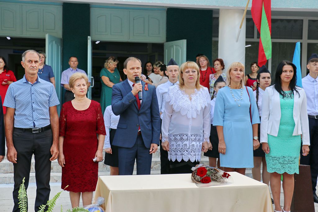 В торжественной линейке приняли участие глава государственной администрации Рыбницкого района и г. Рыбницы Вячеслав Фролов, представитель общественных движений, член президиума ОСТК, «Женщины за права и свободы», Союза защитников Приднестровья Надежда Чегурко, главный специалист по воспитательной работе и дополнительному образованию МУ «РУНО» Оксана Калмацуй, депутат городского и районного Совета народных депутатов Александр Пустовит, участник боевых действий, защитник ПМР Виктор Костенко.