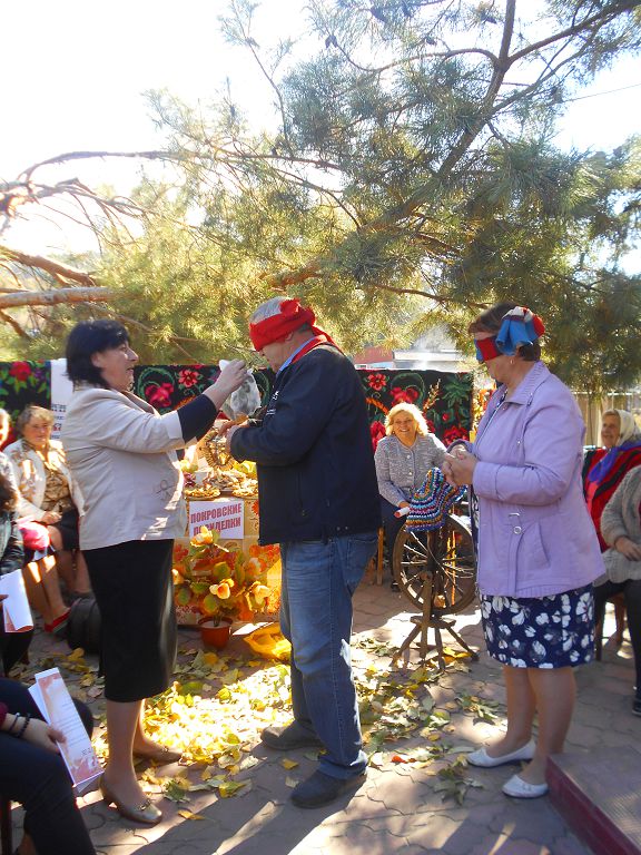 На посиделках присутствовал и председатель сельского совета – глава администрации села Н. Слипенький, который также активно участвовал в конкурсах. Он поздравил присутствующих с праздником Покрова, пожелав мира, добра и благополучия.