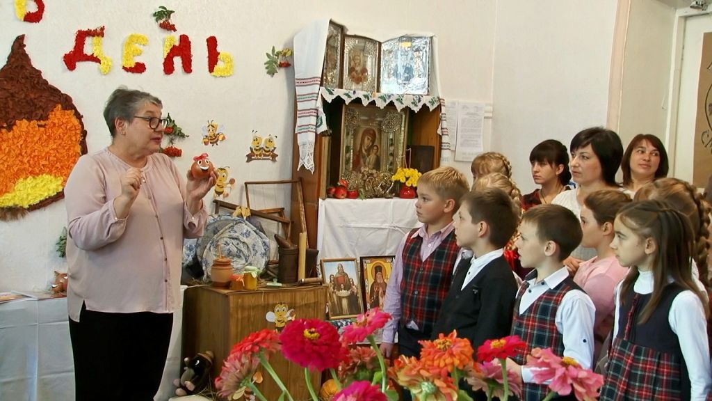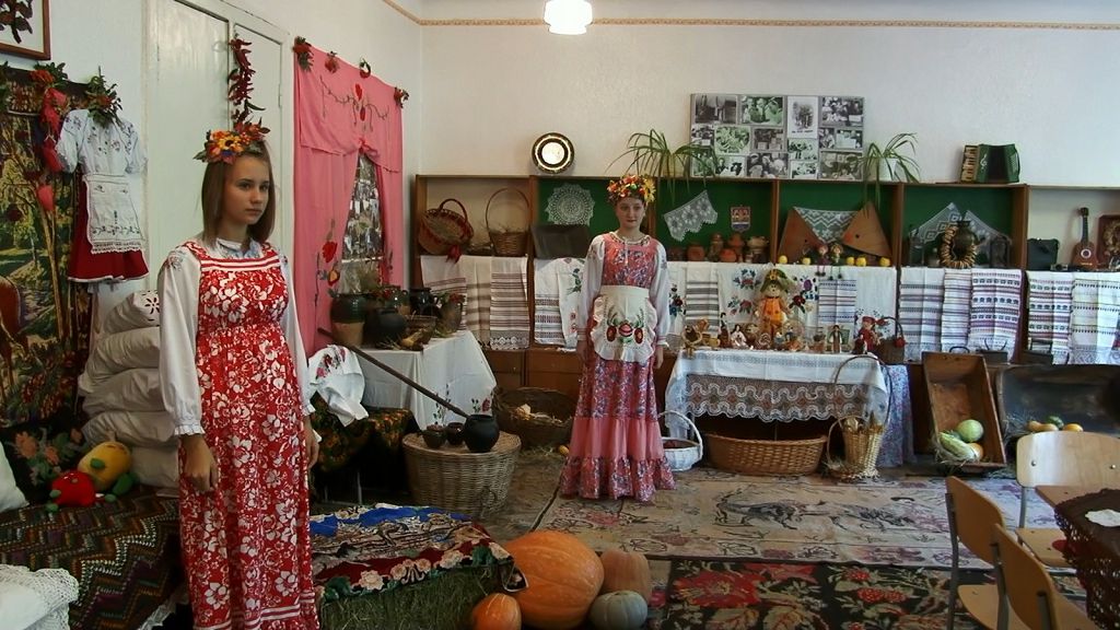 Один из кабинетов ЦДЮТ превратился в стилизованную этногостиную. На полу – тканые дорожки, а в воздухе витает запах свежего сена. На столах глиняные горшки и корзины. музейные экспонаты оживляют румяные яблоки, а также другие фрукты и овощи. Создается впечатление, что наши предки только что собрали богатый урожай. Есть уголок «каса-маре» с традиционными вышитыми подушками. Рядом – сноп кукурузы и яркие тыквы. Помещение украшают старинные рушники с национальными узорами. Они достались Анастасии Ланецкой от прабабушки. Всё вышито вручную.