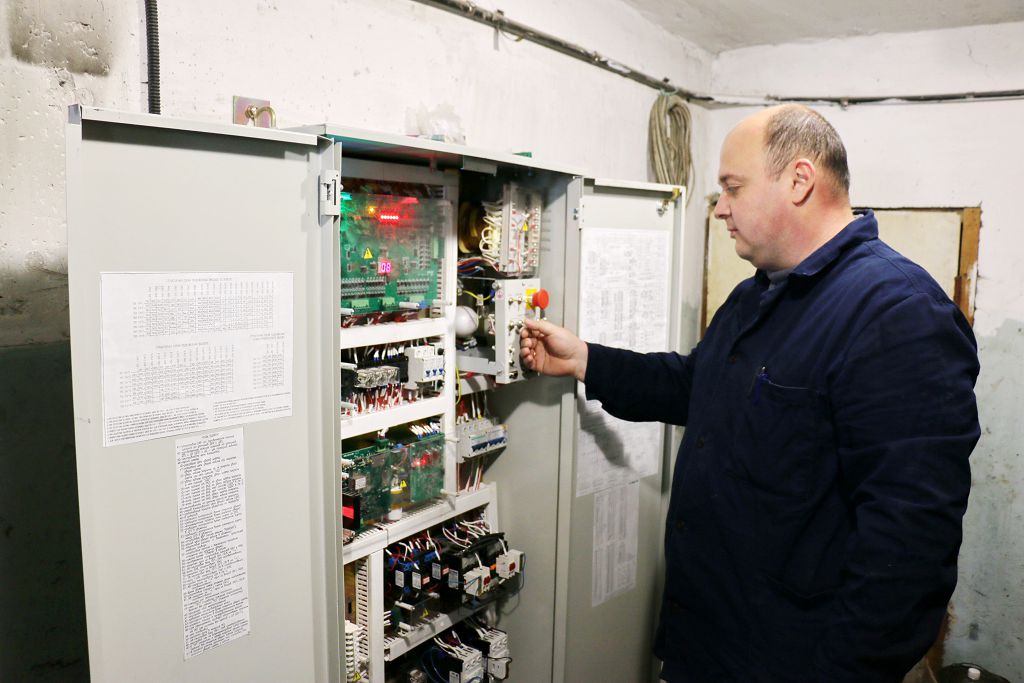 Чтобы воочию увидеть чего коснулась модернизация, вместе с директором и специалистами МУП «Рыбницалифт» отправляемся на технический этаж здания. Для этого воспользовались, конечно же, лифтом. Как только двери подъемника открылись, перед взором предстала значительно преобразившаяся кабинка лифта. Также здесь специалистами предприятия было установлено новое энергосберегающее оборудование и схема управления, которые соответствуют современным стандартам. Добравшись до технического этажа, попадаем в машинное помещение – сердце лифта. Здесь размещаются подъемная лебедка, шкаф управления, электромеханические преобразователи, трансформаторы и другая аппаратура.