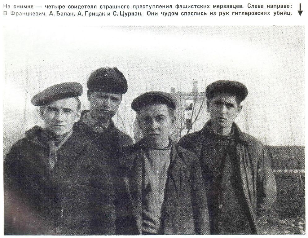 А. Балана (из Берёзовки) подобрали на рассвете в луже крови сестры Морозова и Балан. В ту же ночь они спасли еще 6 узников: К. Цуркана, В. Францкевича, И. Гофманского и др. Раненых поместили в домах Морозовой и Балан. Подпольщик врач В. Науменко оказал им помощь, а чтобы отвлечь подозрение немцев, на дверях домов вывесили дощечки с надписью: «Тиф». Из числа 60 политических заключённых румынских антифашистов спаслись трое – М. Галл, П. Фушбах и Вальтер. О трагедии в городе Рыбнице М. Галл написал книгу «Злодеяния», в которой он отразил связь заключённых с рыбницкими подпольщиками.