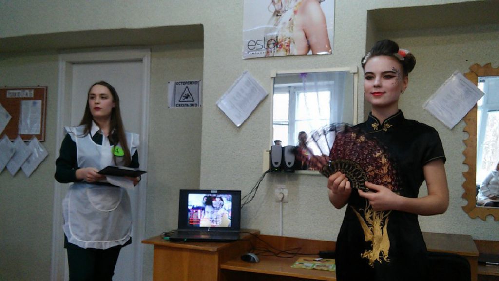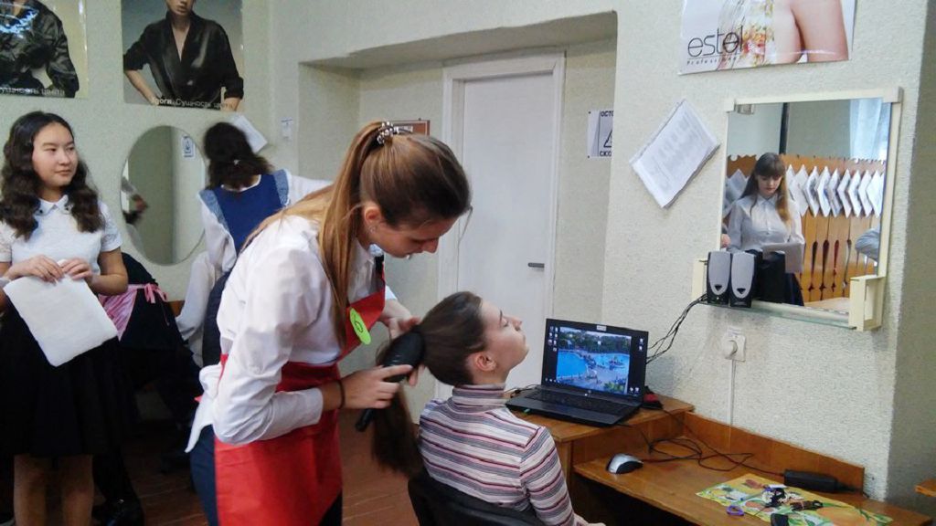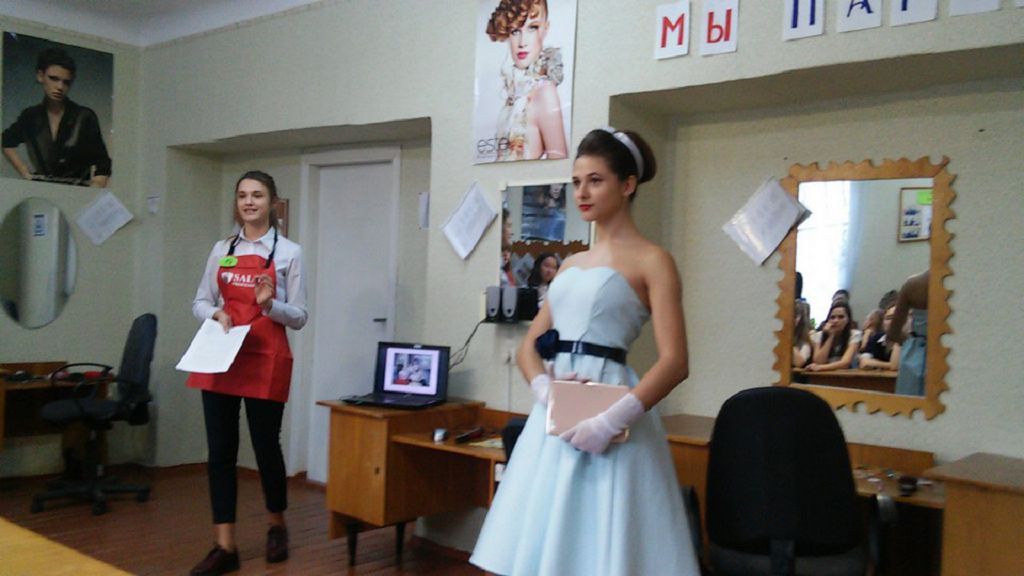 В кабинете,где изучается парикмахерское дело (мастер производственного обучения Елена Фаст), девушки показали свое парикмахерское мастерство по выполнению прически, макияжу. Модели демонстрировали разные стили и образы.