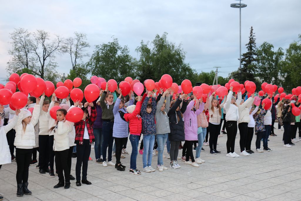 » Спят, спят в боях погибшие солдаты, но наша память никогда не спит,» – эти слова не оставили равнодушным ни одного человека. На глазах у рыбничан наворачивались слезы и к горлу подкатывал комок. Чтобы выразить свою безмерную благодарность павшим за мирное небо над головой, школьники с красными шарами выстроились в слово «Победа».