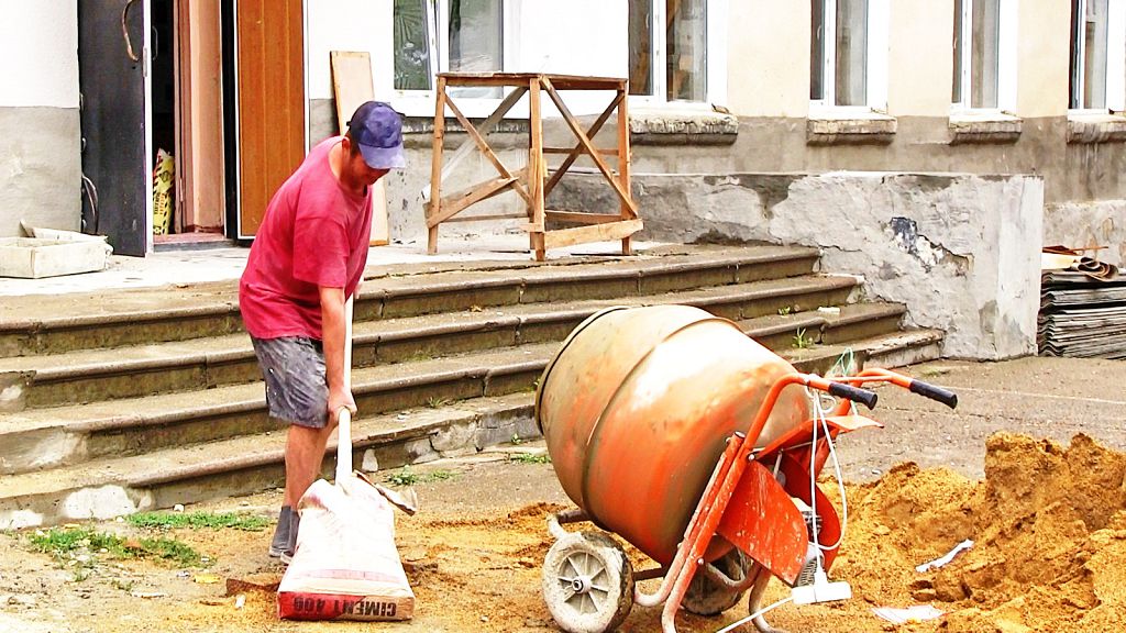 Во время летних каникул в стенах школы слышен шум строительных инструментов, в воздухе витает цементная пыль и запах краски. Пока ученики отдыхают, здесь идет большой ремонт.