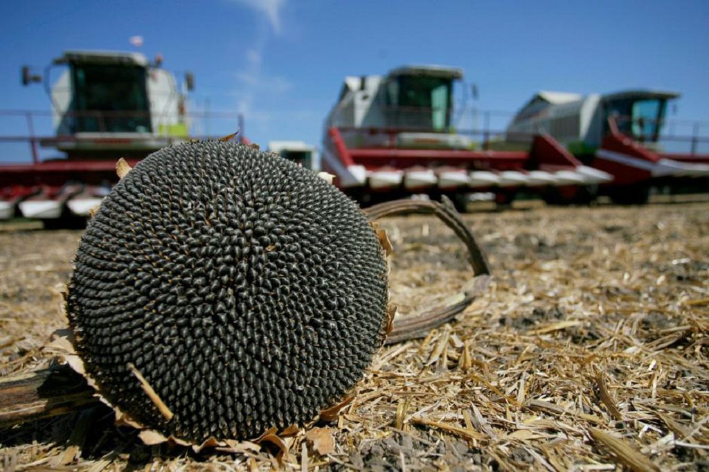 Осень в разгаре. Хорошие погодные условия помогают аграриям максимально использовать время для уборки урожая. Комбайны бороздят поля подсолнечника. Уборка этой культуры набирает темпы.