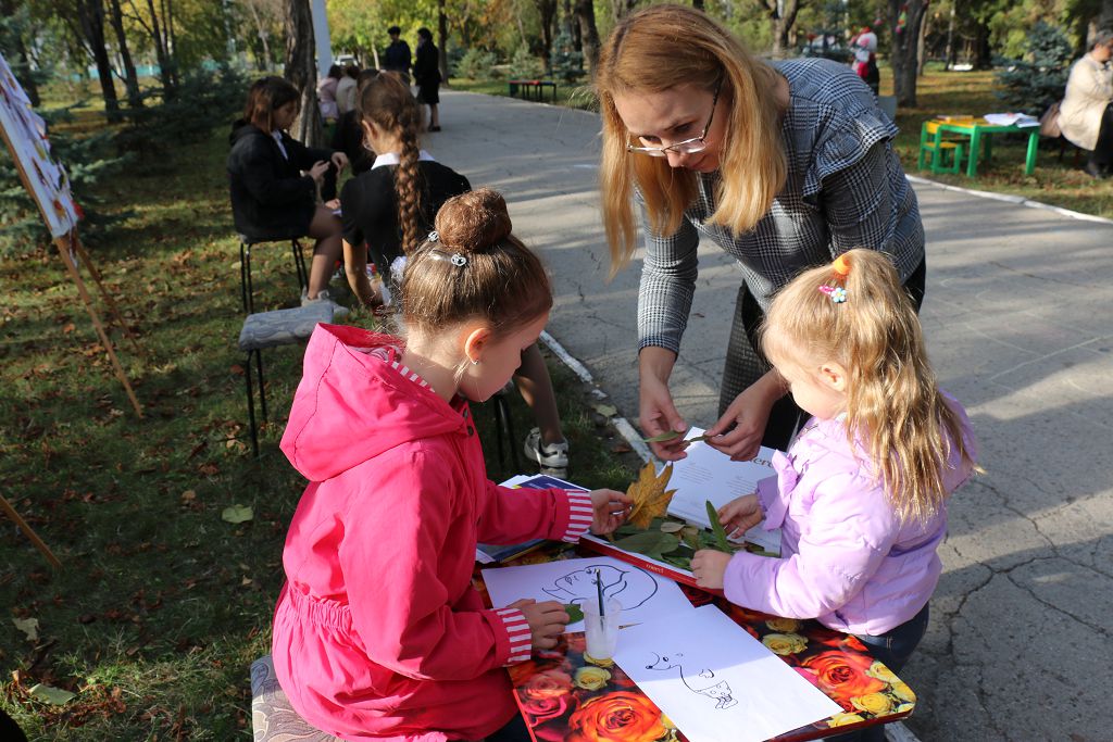 Мастер-классом «Осенних красок карнавал» порадовала желающих Рыбницкая детская художественная школа. А на площадке Детской школы искусств г. Рыбницы можно было сфотографироваться с ростовыми куклами в этностиле, научиться расписывать камушки, нарисовать картину в технике монотипия (намазать листик дерева краской и отпечатать на листе бумаги)