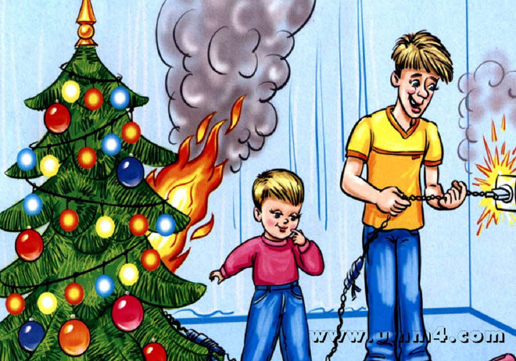 Соблюдение требований пожарной безопасности – необходимая обязанность каждого. Прочно укрепите ёлку на устойчивой подставке подальше от отопительных приборов. Не украшайте ёлку легко воспламеняющимися материалами. Для иллюминации используйте только сертифицированные заводские электрогирлянды, соблюдайте правила их эксплуатации. Никогда не оставляйте включенными гирлянды, если уходите из дома. Не разрешайте детям без присмотра зажигать возле ёлки бенгальские огни и пользоваться хлопушками.