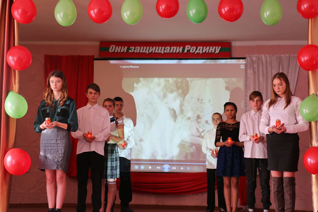 А начался мемориал памяти «Памяти павших – во имя живых» с торжественного вноса государственного флага и исполнения гимна ПМР.Было отмечено, что военный 1992 год стал суровым испытанием для всего приднестровского народа. Он навсегда останется в памяти не только участников боевых действий, семей погибших, но и простых граждан нашей республики. Обращаясь к присутствующим, Юрий Шмигун говорил о важности сохранения памяти о тех страшных событиях: «Мы должны помнить нашу историю и сделать всё возможное, чтобы сохранить мир на земле, чтобы никогда не звучало страшное слово «война». Он призвал ребят хорошо учиться, стать достойными гражданами нашей республики.Затем, пролистав страницы истории, присутствующим рассказали о кровавых событиях тех лет, которые навсегда оставили след в судьбах всего приднестровского народа.Необъявленная война 1992 года унесла жизни более 800 защитников и мирных жителей республики. Более полутора тысяч человек были ранены. Во время боевых действий 1992 года на защиту своей родины люди вставали по зову сердца, никто не ждал специального направления.Присутствующим рассказали о жизни Николая Белова. Было отмечено, что на защиту молодой республики он встал в марте 1992 года. Его сердце перестало биться 15 июня 1992 года. Белов Николай погиб в районе с. Роги. Вспоминали в этот день самую страшную и кровопролитную в истории человечества Великую Отечественную войну, её героев, а также воинов-интернационалистов, погибших в Афганистане. Юные таланты школы-интерната представили свои творческие номера. Они читали стихи, пели песни. Выступления артистов затронули самые тонкие струны души присутствующих. Память о всех тех, кто отдал жизнь во имя Родины, своего народа почтили минутой молчания. Звучит песня «Зажгите свечи». В руках молодого поколения горят свечи – доказательство тому, что память о тех героических событиях, о подвиге героев свято и неотступно живёт в сердце каждого из нас.»Доводилось видеть смерть товарищей, эти страшные моменты останутся в памяти навсегда. Мы должны чтить память о погибших и воспитывать молодёжь в духе истинных ценностей, любви к своей Родине. Пусть в наших сердцах всегда живёт чувство гордости за нашу республику, святая к ней любовь», – рассказал член президиума Союза защитников ПМР Рыбницкого района и г. Рыбницы Анатолий Шевчук.Первая часть мемориала памяти завершилась. А подготовлена она была завучем по воспитательной работе Аллой Панасюк, воспитателями Татьяной Бурдиян и Яной Яшиной.Далее в спортивном зале школы прошли соревнования, организованные учителями физической культуры Павлом Ботнарь и Вячеславом Андронаки.Ребята приняли участие в подтягивании на перекладине, прыжках со скакалкой, стрельбе из пневматической винтовки и др. Все участники соревнований проявили старание, волю к победе, стремление показать лучшие результаты. Победители и призёры были отмечены грамотами Союза защитников ПМР Рыбницкого района и г. Рыбницы.