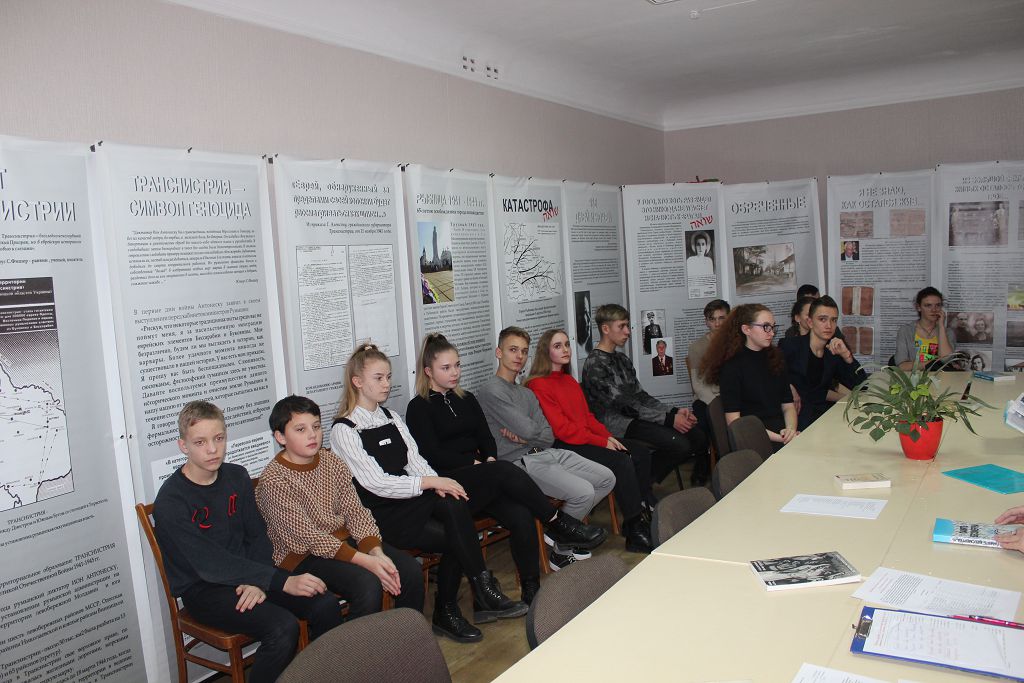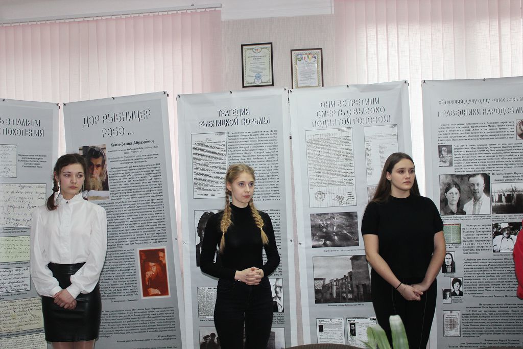 Силами Благотворительного Еврейского Центра «Хэсэд Рахель» была подготовлена экспозиция «Живи! Помни! Расскажи миру!» На стендах были представлены фото и документы реальных участников и свидетелей тех страшных лет, свидетельства о трагедии Рыбницкого гетто. С выставкой приглашённых познакомили члены районного Штаба ученического соуправления и добровольческого движения, Школы волонтёра «Мы – рядом!» под руководством Аллы Кирика. Ребята зачитывали документы, письма, дневники и голоса их дрожали. Нет и не может быть срока давности для таких страшных страниц истории.