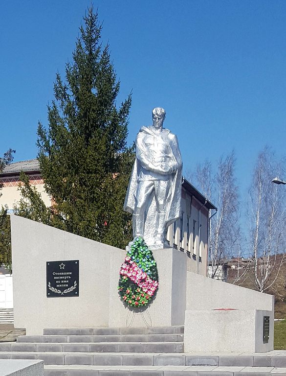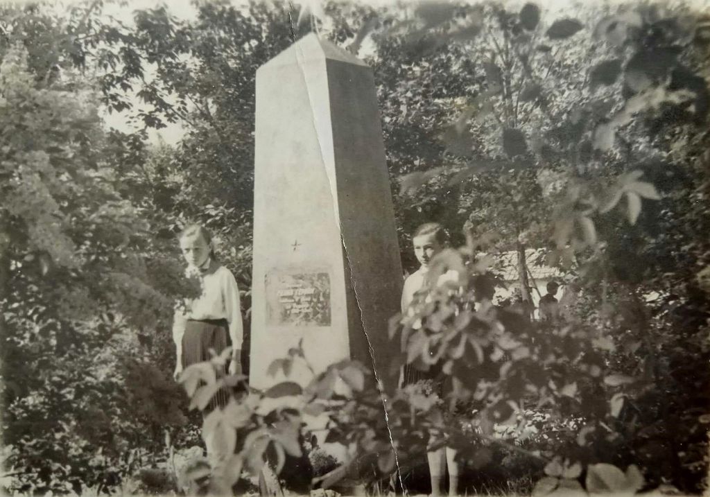 В марте 1944 года, когда шло наступление советских войск на всех фронтах, началось освобождение нашего района от оккупантов. Румыны, уходя, расстреливали всех военнопленных. Преследовали и убивали тех, кто пытался бежать. Убитых бросали в выгребную яму. Спустя годы их останки были извлечены и захоронены на территории сельской школы. В 1976 году останки военнопленных перезахоронили. Сейчас они покоятся на прилегающей к ДК территории».