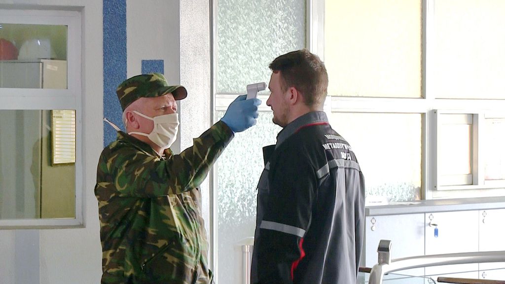 Автобусы, на которых металлургов привозят на работу, дезинфицируются хлорным раствором. Теперь и на проходной нужен не только пропуск. Всем входящим измеряют температуру. Дезинфекция рук и маска – тоже обязательный атрибут. Дальше – тоже профилактика.