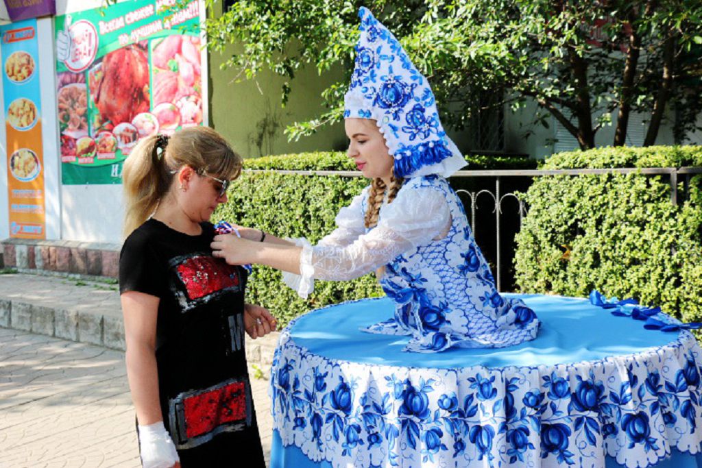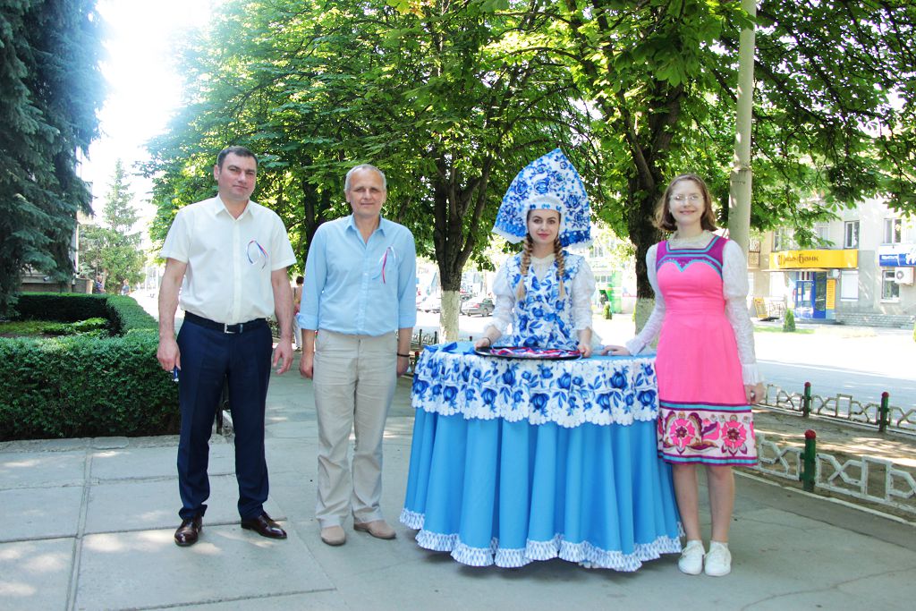 На центральной площади нашего города с утра звучала музыка. В этот день на улицах города представители молодого поколения рыбничан раздавали ленточки с цветами государственного флага России в рамках акции «Россия – необъятная страна».