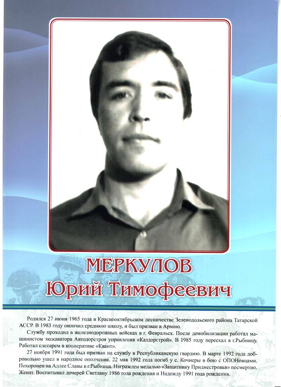 Меркулов Юрий Тимофеевич был освобожден из Кишиневской тюрьмы в марте 1992 года и снова вернулся на службу в Гвардию. Ездил на позиции, исправно нес службу. Боевые товарищи, вспоминая о Юрии, отмечали, что он был надежным товарищем и исполнительным бойцом.