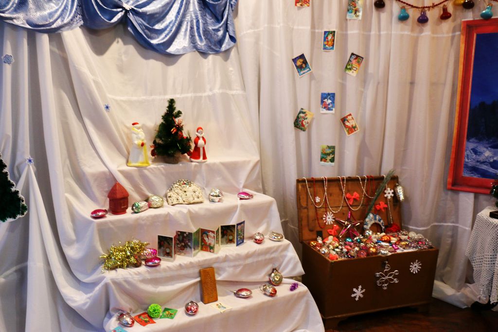 Немало интересного здесь может увидеть и стар и млад. Взрослые смогут вспомнить детство, а юные гости – с головой окунуться в зимнюю сказку, познакомиться с новогодними персонажами и игрушками из прошлого, погрузившись во времена детства своих мам и пап, дедушек и бабушек. Выставка откроется 22 декабря и продлится до конца января. Посетить её можно в группе до 3-х человек, если это семья – то до 5. Вход платный.