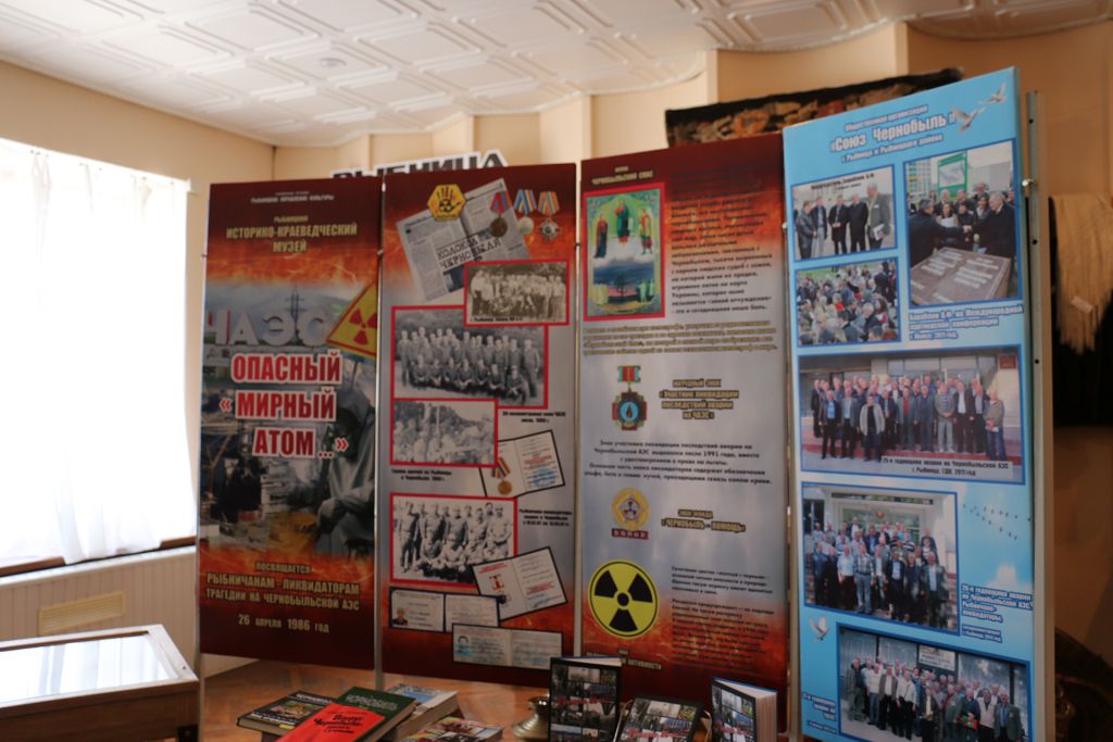 Более 600 тысяч человек со всего Советского Союза участвовали в ликвидации последствий аварии. Среди них были и жители Рыбницы и района. На выставке экспонируются фотографии, документы, удостоверения и награды наших земляков-участников ликвидации последствий аварии на Чернобыльской АЭС. Среди экспонатов – респираторы, дозиметры ДП-5, предназначенные для измерения уровней гамма-радиации радиоактивной заражённости предметов, индивидуальный дозиметр для контроля радиоактивного облучения участника ликвидации последствий аварии. Есть здесь и макет атомного реактора (правда, это сувенир), а также книги, посвящённые аварии на Чернобыльской АЭС, среди которых и книга «Трагедия 86-го…» участника ликвидации последствий аварии, председателя ОО «Союз Чернобыль» г. Рыбницы и Рыбницкого района Александра Бараблина.