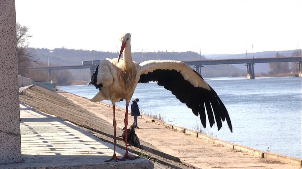 Жорик стал настоящим символом весны. На своих крыльях принёс тепло в Рыбницу. Первым делом аист полюбовался Днестром и прогулялся по набережной. Здесь его уже заждались и взрослые, и дети: