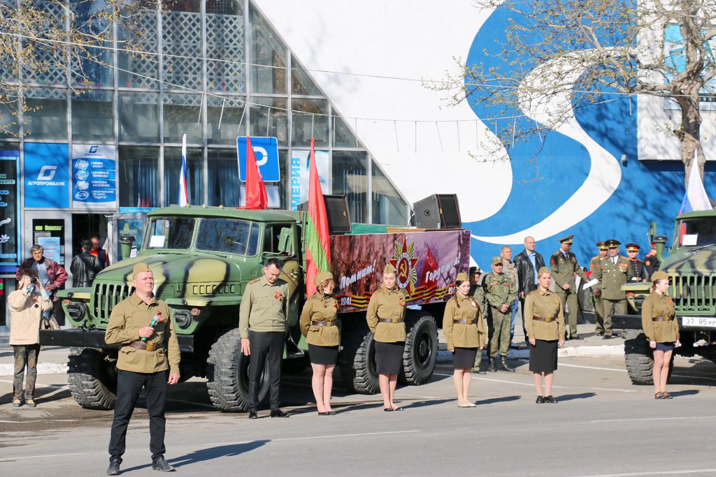 Далее на центральной площади города прошла церемония поднятия флагов – копии знамени Победы и государственного флага ПМР. А прозвучавшая песня «День Победы» растрогала присутствующих до слёз.