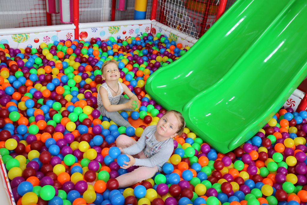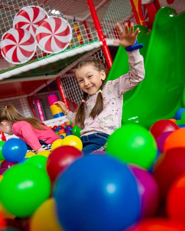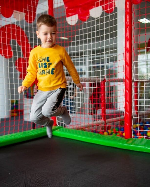 Детский радостный смех – лучшая оценка для тех, кто здесь работает. Большое игровое пространство, сухой бассейн с яркими шариками, батут, маятники, причудливый лабиринт и …диванчик для родителей.