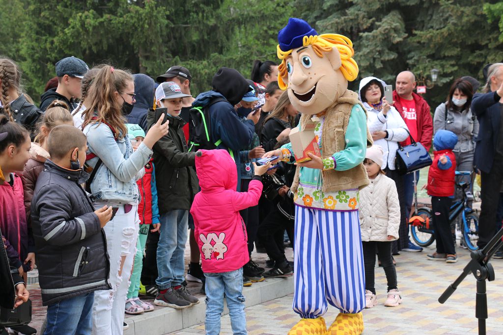 На импровизированной сцене у фонтана своё творчество пришедшим на праздник подарили учащиеся Рыбницкой детской музыкальной школы им. Ю. Гагарина. Концертные номера сменяли друг друга, даря всем присутствующим положительные эмоции и хорошее настроение. Тепло принимали зрители танцевальные и музыкальные творческие подарки учащихся Детской школы искусств г. Рыбницы, щедро одаривая их бурными аплодисментами. А вот площадка Рыбницкой централизованной библиотечной системы. Двое мальчишек что-то бурно обсуждают возле ростомера. Измерив свой рост в книгах, они узнали, какие книги им рекомендовано прочитать в соответствии с возрастом. Здесь же все желающие могли принять участие в викторинах под чутким руководством импровизированных умников, а также повеселиться в игровой зоне.