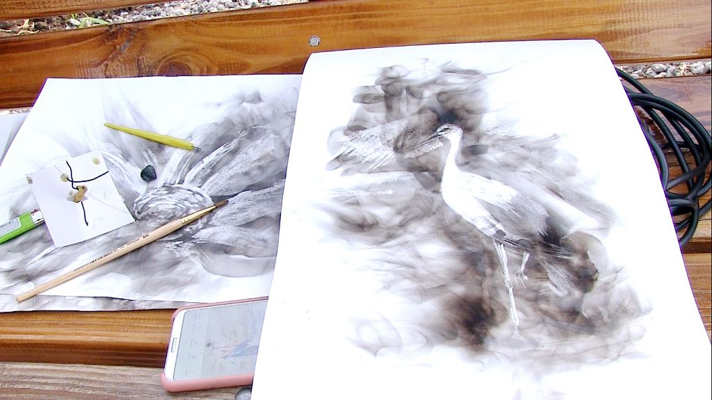 «Если хочется штрихи потемнее, подносишь ближе огонь, вертишь бумагу, то есть интуитивно направляешь этот дым. Контролировать это хотя бы отчасти – уже интересно. Конечно, с огнём надо быть осторожнее, потому что может быть пожар, может загореться бумага, можно получить ожог и так далее. Но необходимо быть осторожным и всё будет в порядке», – поясняет Анна.