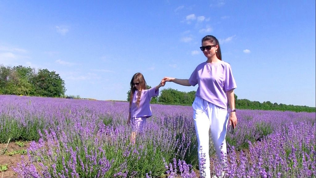 Ароматные цветы притягивают не только бабочек. Сюда слетаются и любители сэлфи. Ирина Донцова – дизайнер одежды. Специально сшила фэмили-лук в лавандовом цвете для себя и дочки. Смотрится органично.
