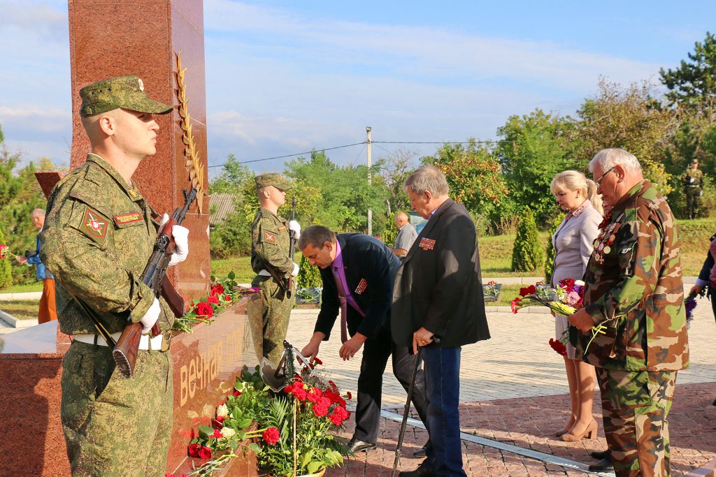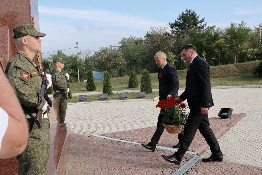 Утром в день рождения республики благодарные потомки пришли к памятному знаку генерал-майору Константину Цветкову, командиру 41-й гвардейской стрелковой дивизии. Под его командованием дивизия прошла славный боевой путь от Сталинграда до Вены, освободив сотни городов и сёл, в том числе и Рыбницу. В знак благодарности за мирное небо над головой к подножию памятного знака легли живые цветы.