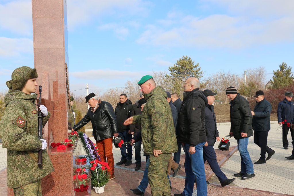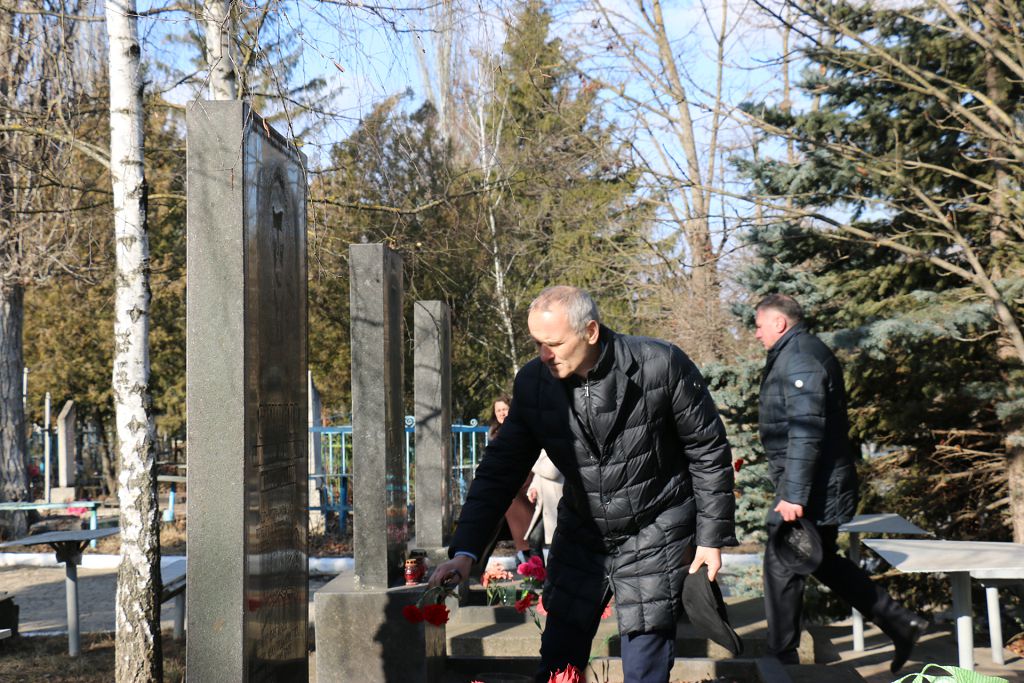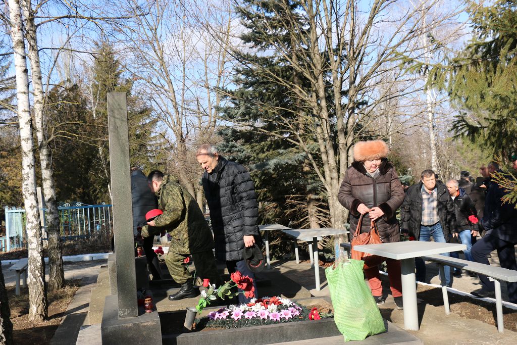 К подножию памятника и гранитным плитам легли венки и живые цветы. Далее на Аллее Славы городского кладбища прошла панихида по погибшим воинам-интернационалистам. К их могилам были возложены алые гвоздики.