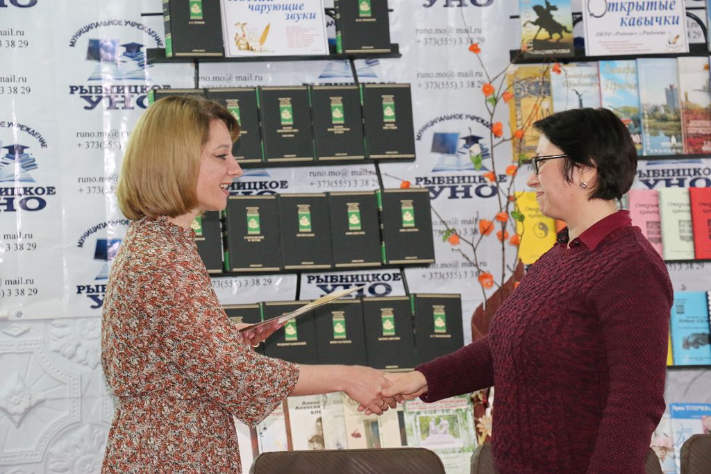 Под занавес мероприятия к авторам обратилась заместитель начальника Рыбницкого УНО Оксана Погребная, которая поблагодарила гостей за интересную встречу, пожелала больших творческих успехов и вручила благодарственные письма МУ «РУНО».