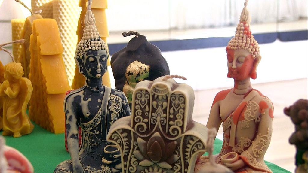 В мастерской сладко пахнет луговыми травами, медом и цветами. И это притом, что свечи еще не горят. Ангелы из пчелиного воска, статуэтки Будды, животные, цветы и не только – из пчелиного воска Ольга создает маленькие произведения искусства.
