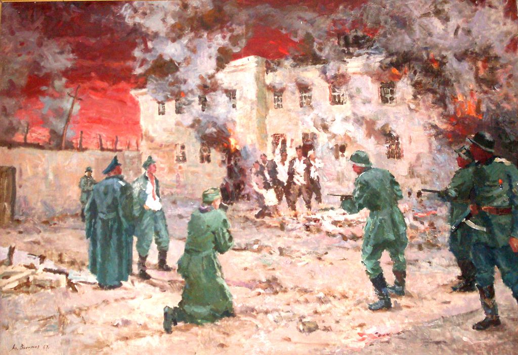 Прошла долгая, мучительная ночь. А наутро немецкие и румынские солдаты появились с охапками соломы. Они внесли ее в камеры, затем облили полы бензином и зажгли солому. Через несколько минут вся тюрьма горела. Крики раненых, заживо горящих в огне, слились с треском дерева и воем огня. Едкий, удушающий дым слепил глаза и не давал дышать. Некоторым из заключенных удавалось добраться до окон и лестниц. Но тут их пристреливали штыками дикие звери Гитлера и Антонеску.