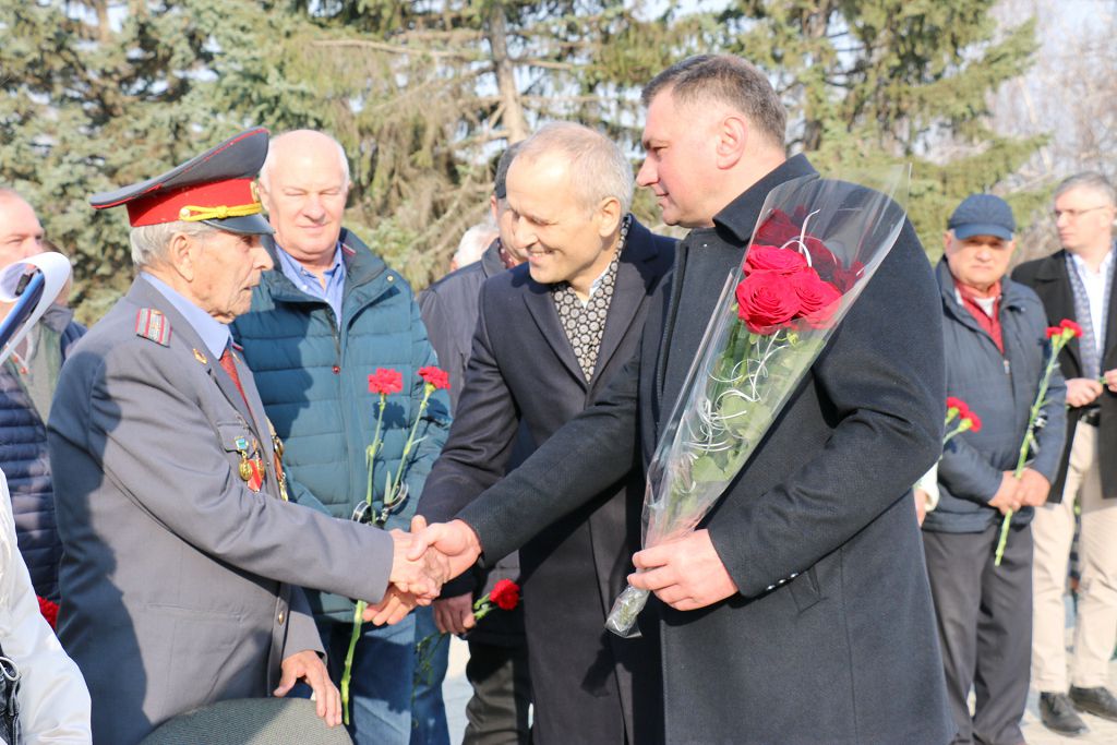 На митинге присутствовал ветеран Великой Отечественной войны Филипп Сафронович Оловягин. В знак благодарности за великий подвиг глава госадминистрации Виктор Тягай, председатель Совета народных депутатов Вадим Лозовский вручили ветерану цветы.