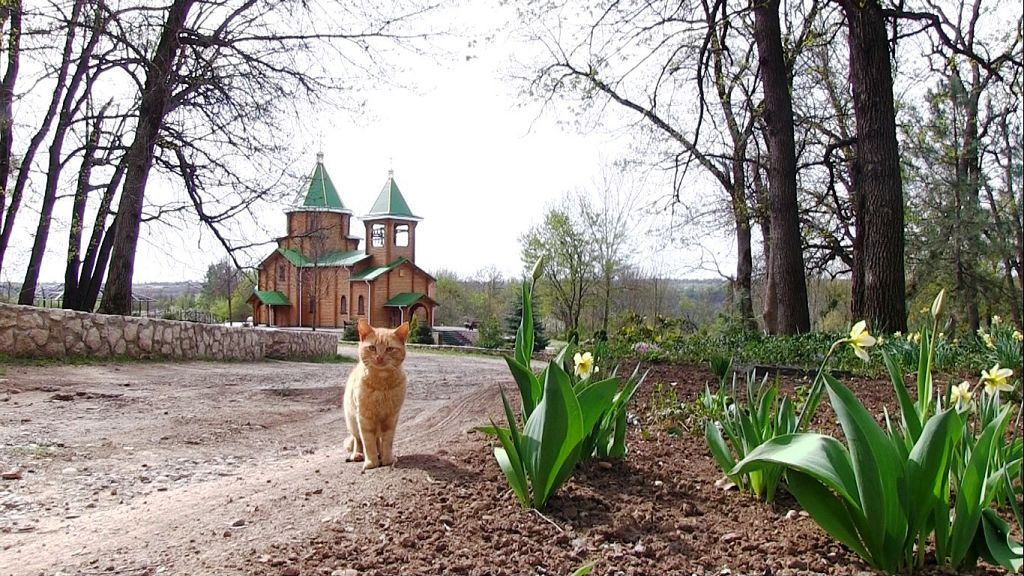 У входа в монастырь встречают хвостатые привратники – два котика. По словам монахов, рыжик может понадкусывать ваши куличи, уж больно он наглый. Уже были случаи, когда он залезал в пасхальную корзинку и лакомился от души.