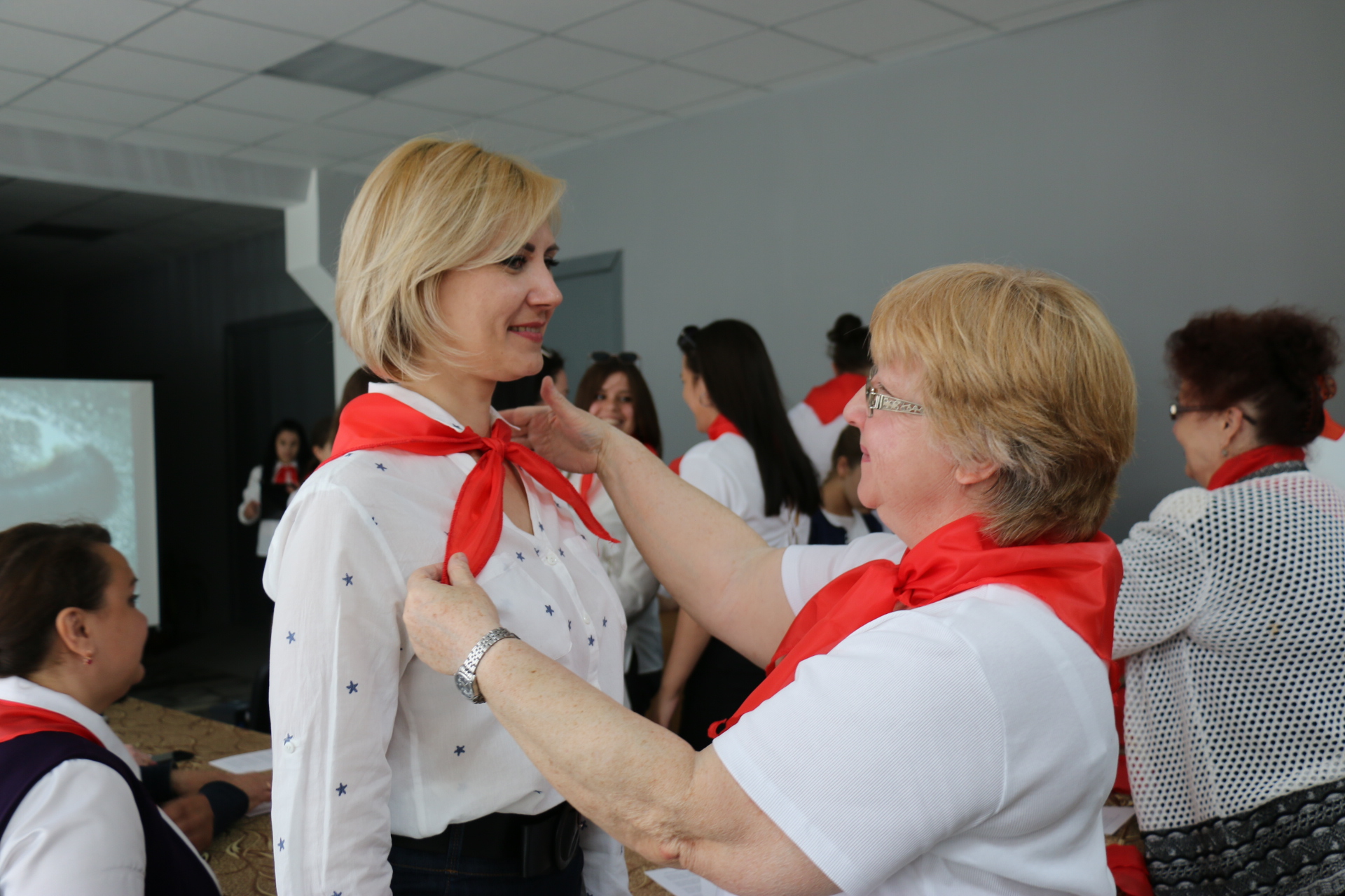 Ветераны пионерского движения повязали участникам встречи алые галстуки, поделились воспоминаниями, связанными с пионерией. В частности, о своей поездке во Всесоюзный пионерский лагерь «Артек» рассказала Дина Листюгина.