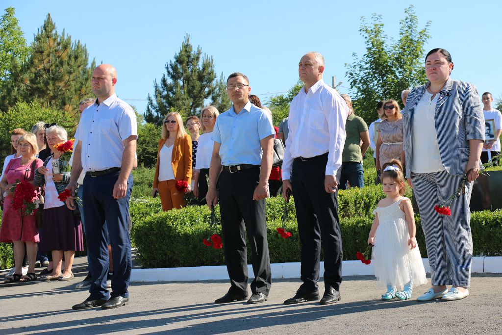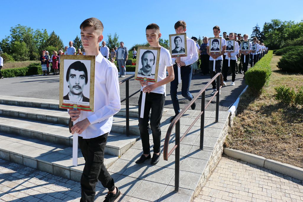 Юноши с портретами погибших защитников Приднестровья стали участниками бессмертного полка. Двумя стройными рядами они прошли к мемориальным плитам защитников, которые в нашей памяти, как на портретах, навсегда останутся молодыми. Память о рыбничанах, погибших при защите Приднестровья, почтили минутой молчания. К обелиску Славы и мемориальным плитам были возложены живые цветы.
