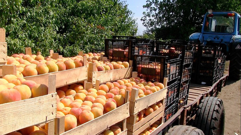 К сбору персиков привлекли работников из соседних сел. С поля урожай отправится в холодильники на хранение. Их построили в этом году. Всего в Гидириме выращивают два сорта персиков.