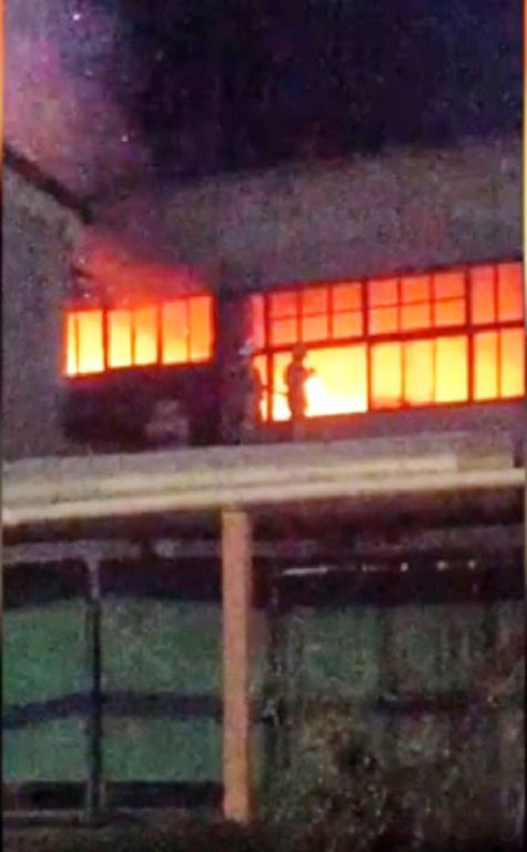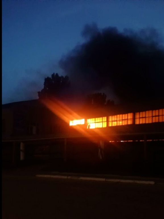 Насосный завод уже много лет не работает. Недавно один из цехов купили под склад. Накануне пожара рабочий занимался резкой старой деревянной обшивки и металлических конструкций. Дерево и мусор загорелись.