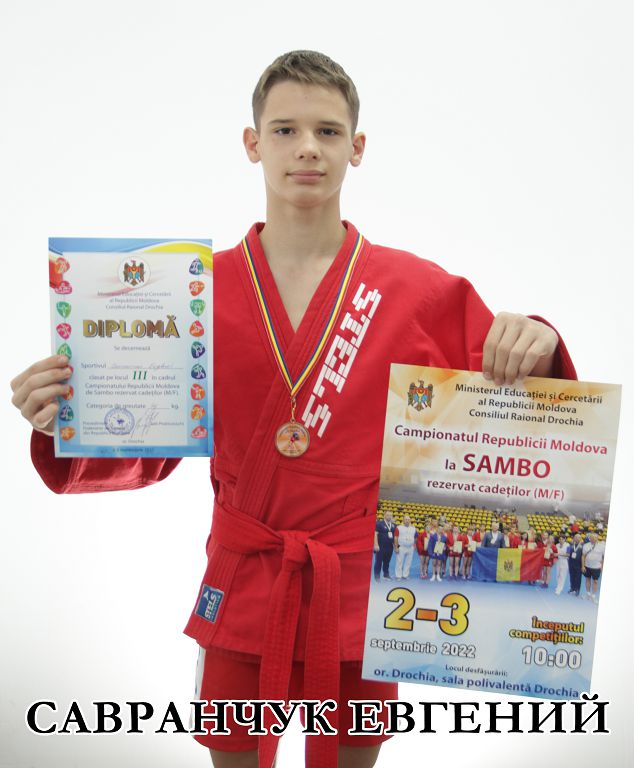 Евгений Савранчук был заявлен в весовой категории до 46 кг. Он довольно успешно провел предварительные схватки, но в полуфинале по очкам уступил самбисту из г. Бельцы. В итоге Евгений завоевал бронзовую медаль и стал призером престижного чемпионата. Впервые в истории рыбничанин привез медаль по самбо. Динил Сауляк (42 кг), Иван Павленко (49 кг), Евгений Кожукарь (53 кг) приобрели колоссальный опыт в столь ярком и зрелищном спортивном мероприятии.