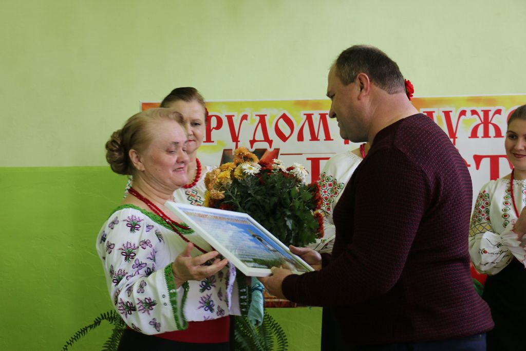Художественному руководителю ансамбля «Бусуйок молдовенеск» Раисе Нистор вручили букет цветов и благодарственное письмо от администрации села за многолетнее сотрудничество и вдохновляющее творчество народного фольклорного коллектива.