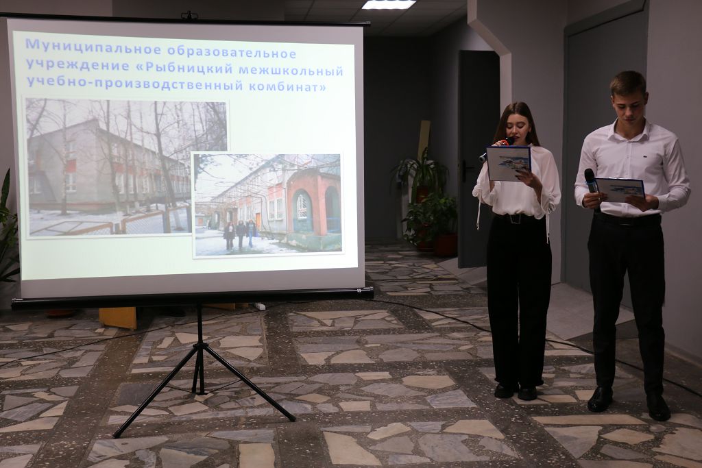 Присутствующим был показан презентационный фильм о МОУ «Рыбницкий межшкольный учебно-профориентационный центр». Он был образован в 1982 году с целью обеспечения допрофессионального образования старшеклассников. В течение четырёх десятилетий произошёл ряд преобразований. С 2018 года приоритетным направлением МОУ «РМУПЦ» стало создание системы предпрофильной подготовки учащихся основного общего образования и обеспечения им возможности ознакомления с различными направлениями будущей профессиональной деятельности. В РМУПЦ обучаются школьники старших классов города и района. Для 8-9 классов реализуется программа по учебному предмету «Профориентация» и спецкурсы профориентационной направленности. Учащиеся 10-11 классов имеют возможность параллельно со средним образованием получить по желанию профессиональную подготовку по одной из рабочих профессий и могут осваивать их на практике: «Официант, бармен», «Секретарь-делопроизводитель», «Парикмахер», «Младшая медицинская сестра по уходу за больными», «Портной», «Тракторист-машинист сельскохозяйственного производства», «Водитель категории С», «Электромонтер по ремонту и обслуживанию электрооборудования».
