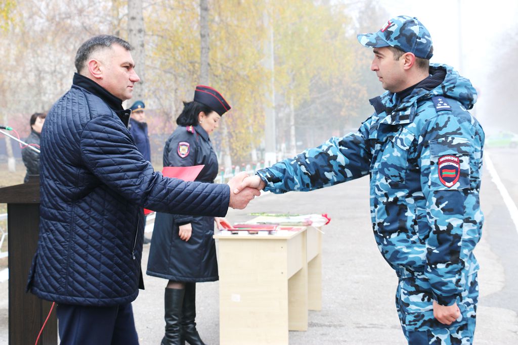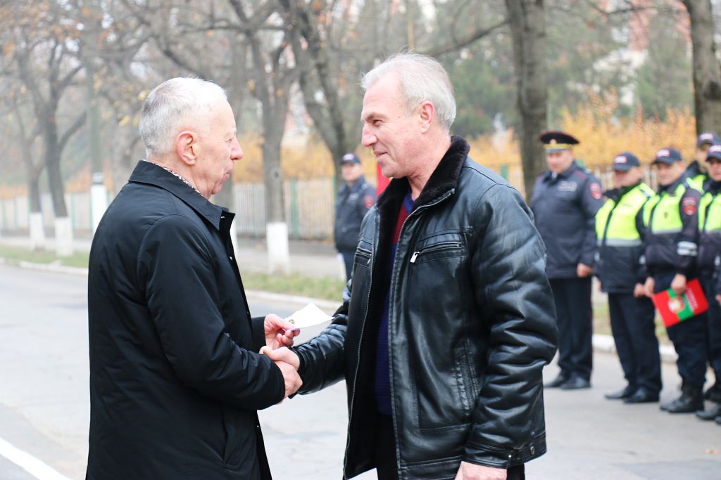 Со словами поздравлений к личному составу Рыбницкого ОВД и ветеранам, присутствующим на торжественном построении, также обратился руководитель республиканской ОО «Ветераны органов внутренних дел Приднестровья» генерал-майор милиции Иван Фучеджи. За большой вклад в становление и развитие ОВД республики сотрудникам, находящимся на заслуженном отдыхе, вручили нагрудный знак «Ветеран милиции».