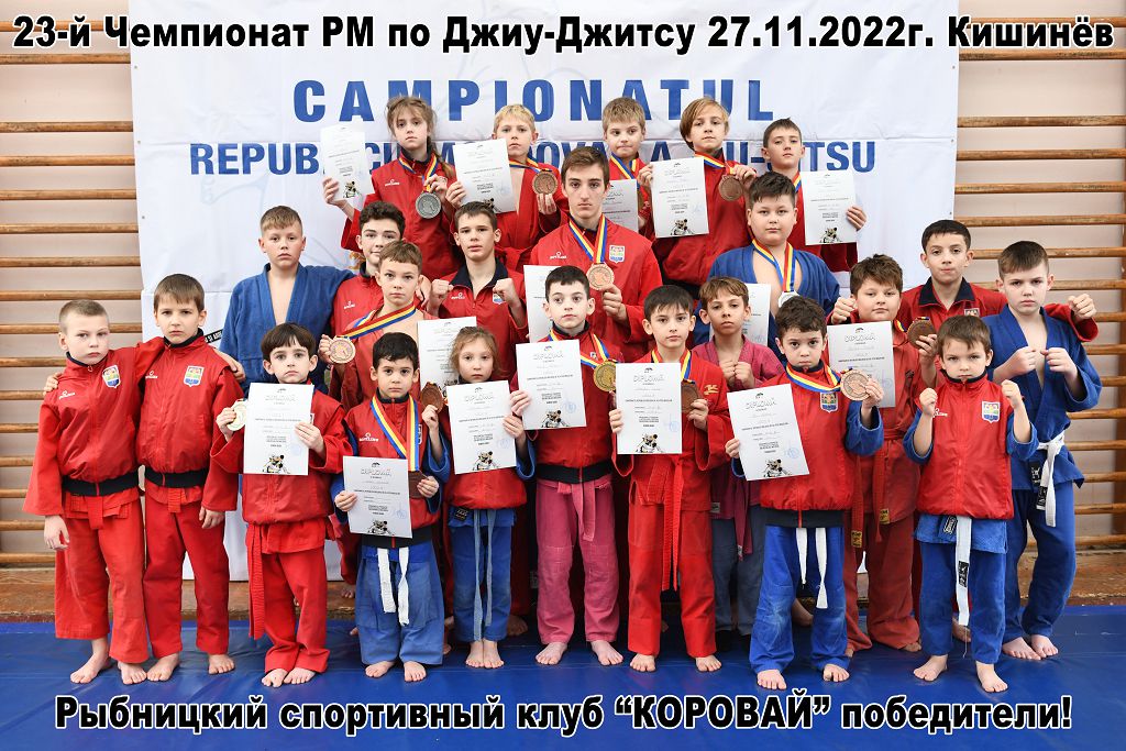 В г. Кишинёве состоялся 23-й чемпионат Молдавии по бразильскому джиу-джитсу, который собрал 300 борцов из 10 клубов Молдавии и Приднестровья. Организаторы – Национальная Федерация джиу-джитсу Молдавии при содействии Министерства образования и исследований Молдавии. Спортивный клуб «Коровай» заявил 25 борцов, среди которых – две девочки. Возраст участников, определённый положением о соревновании, от 5 лет до взрослых мужчин.