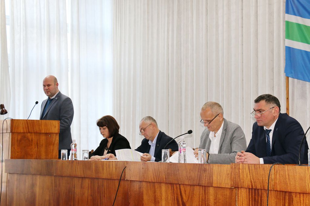 В минувший четверг в зале госадминистрации состоялась очередная 32 сессия 26 созыва Совета народных депутатов, которая завершила работу депутатского корпуса в текущем году. В работе сессии приняли участие глава государственной администрации Рыбницкого района и г. Рыбницы Виктор Тягай, заместители главы Александр Тищенко, Юрий Молдовский, Валентин Кравченко, управляющий делами госадминистрации Владимир Власюк, прокурор города и района Руслан Калуцкий, председатель суда Наталья Марченко, начальник Финансового управления Людмила Ольшанская, представители Рыбницкого ОВД, Счетной палаты, руководители учреждений, организаций, силовых структур и ведомств. Вёл заседание председатель Совета народных депутатов Рыбницкого района и г. Рыбницы Вадим Лозовский. В основной повестке к рассмотрению были запланированы 14 вопросов и 4 дополнительных.