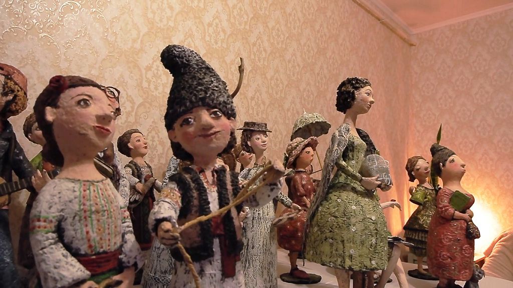 Вдохновенные музыканты или провинциальные красавицы – в куклах оживают порой ироничные образы людей. Как, например, в одной из дам. Детали раскрывают её характер и историю жизни.