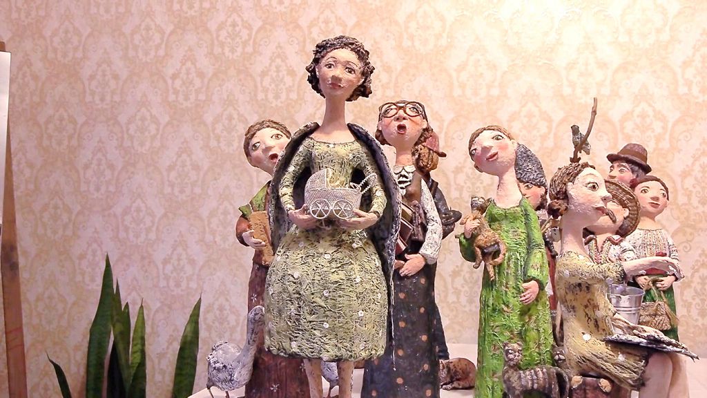 «Сначала я делаю голову куклы. Вот здесь и рождается характер. Он будет грустным, либо будет смеяться, или он будет глупым. Папье-маше – достаточно непластичная масса, не как керамика или пластик, в работе с которым можно получить морщинку, складочку. Она достаточно шершавая, грубая. И получить характер в этом материале очень сложно. Иногда задумываешь один, а из шершавой грубой массы папье-маше рождается совершенно другой персонаж», – делится мастерица.