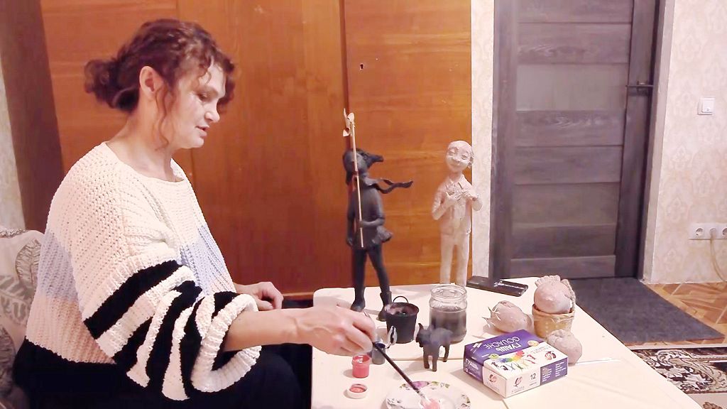 На создание одной куклы уходит около месяца. Летом слои бумаги сохнут быстрее. Дальше куклы обретают цвет. Краска проявляет фактуру папье-маше. У каждой куклы выразительная мимика. На лицах как будто застыли эмоции.