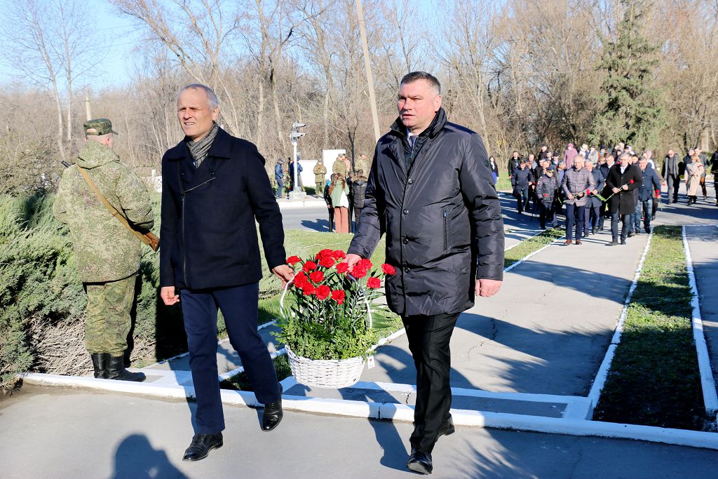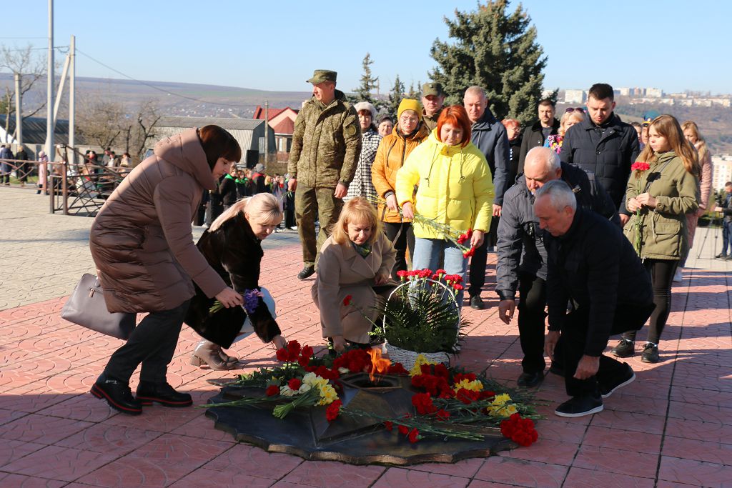 Мужество, стойкость и самоотверженность поколения победителей живёт в нашей памяти. Мы бережём её, храним и верим, что она переживёт века. Чтим и гордимся подвигами наших дедов, всех тех, кто героически сражался на фронтах Великой Отечественной, трудился в тылу, восстанавливал страну в послевоенные годы. Память о героях-освободителях, прошедших огненными дорогами войны, погибших в бою солдат почтили минутой молчания. К памятному знаку были возложены венки и цветы.